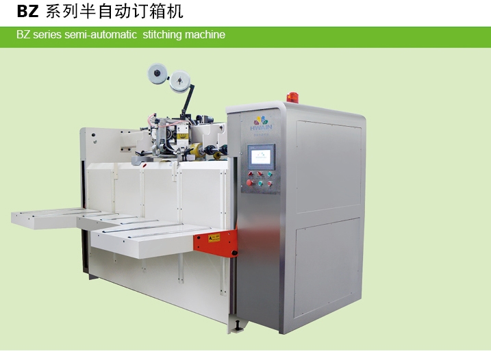 BZ2800型釘箱機是一種半自動化的紙箱釘鉚封邊設備。主要將印刷、開槽、壓痕的單片成箱或雙片成箱的三、五層瓦楞紙板,由人工折疊送入,機器自動訂封邊并自動計數(shù)輸出,使其最終成為成品箱。該設備廣泛適用于紙箱包裝行業(yè)。可根據(jù)用戶要求訂單釘、雙釘、加強釘,釘距可調(diào)整。